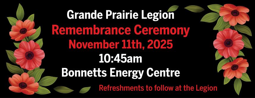 Join us in honouring those who served and sacrificed for our freedom. The 2025 Remembrance Day Service, presented by Grande Prairie Legion #54, will be held on November 11th at Bonnetts Energy Centre. This special event invites the community to come together in a moment of reflection and gratitude.